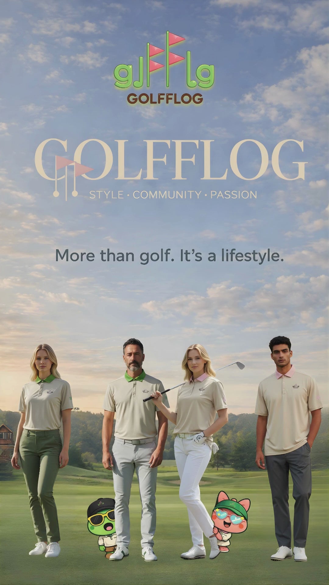Introducing the first official GOLFFLOG™ polo – a stylish celebration of golf and our beloved mascots, Romeo & Juliet